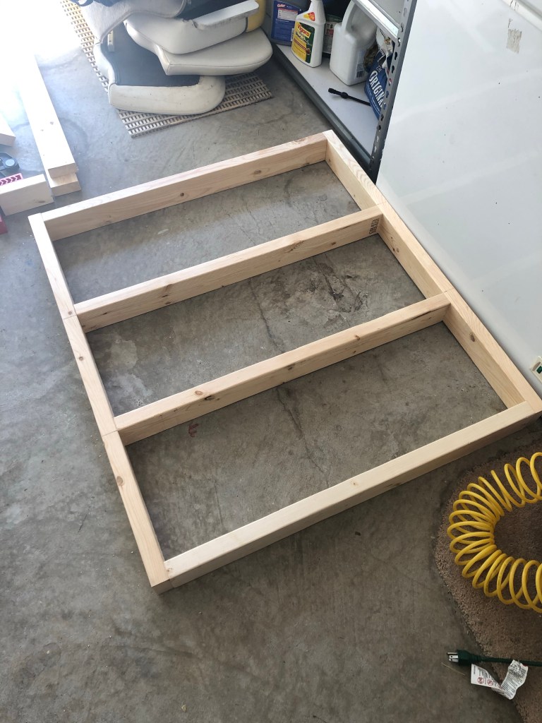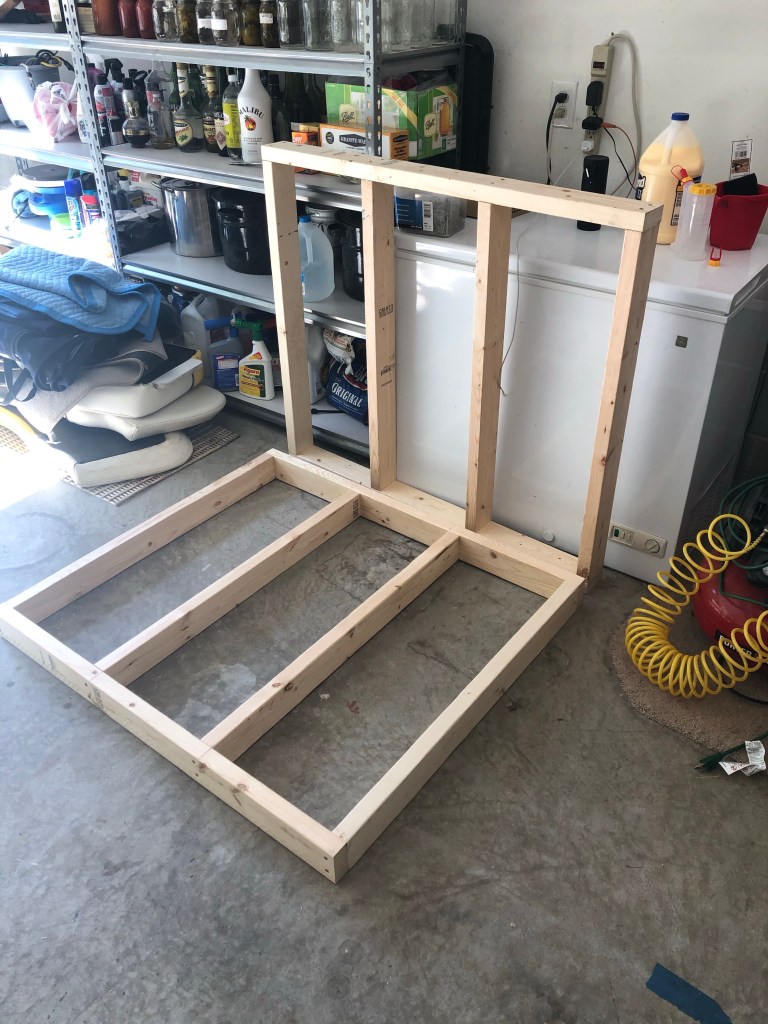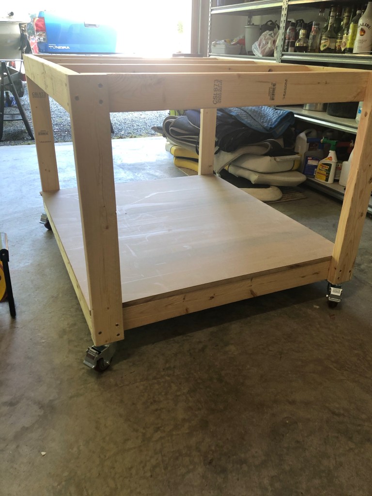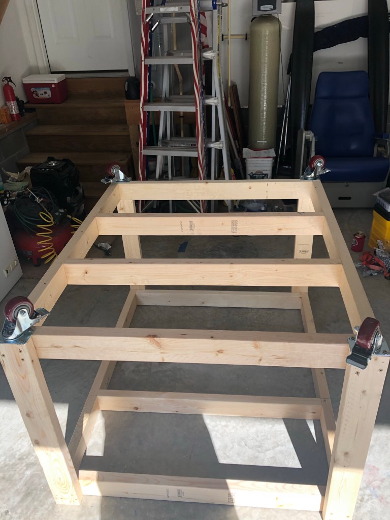 First things first, I needed a workspace that didn’t involve the floor of the garage in any way. It’s hard on the back, the knees, basically everything. I feel like every project I do, I wind up sitting on the floor at some point. I went online and found some plans for a work-bench that didn’t look too difficult or expensive and decided to go for it.
