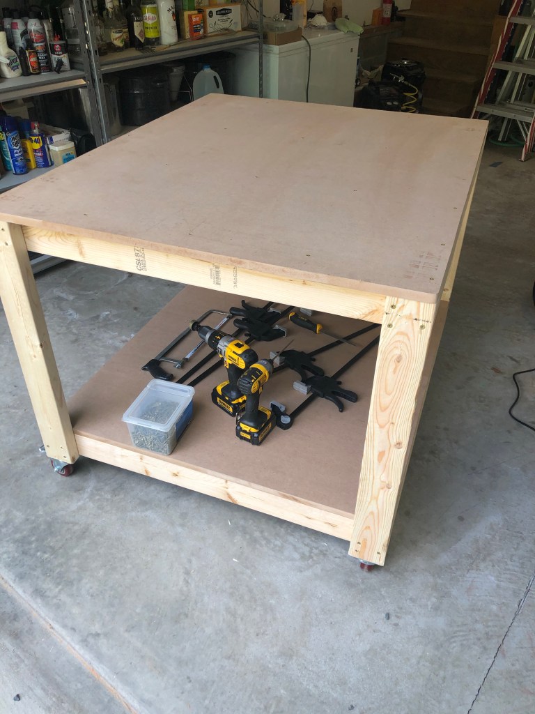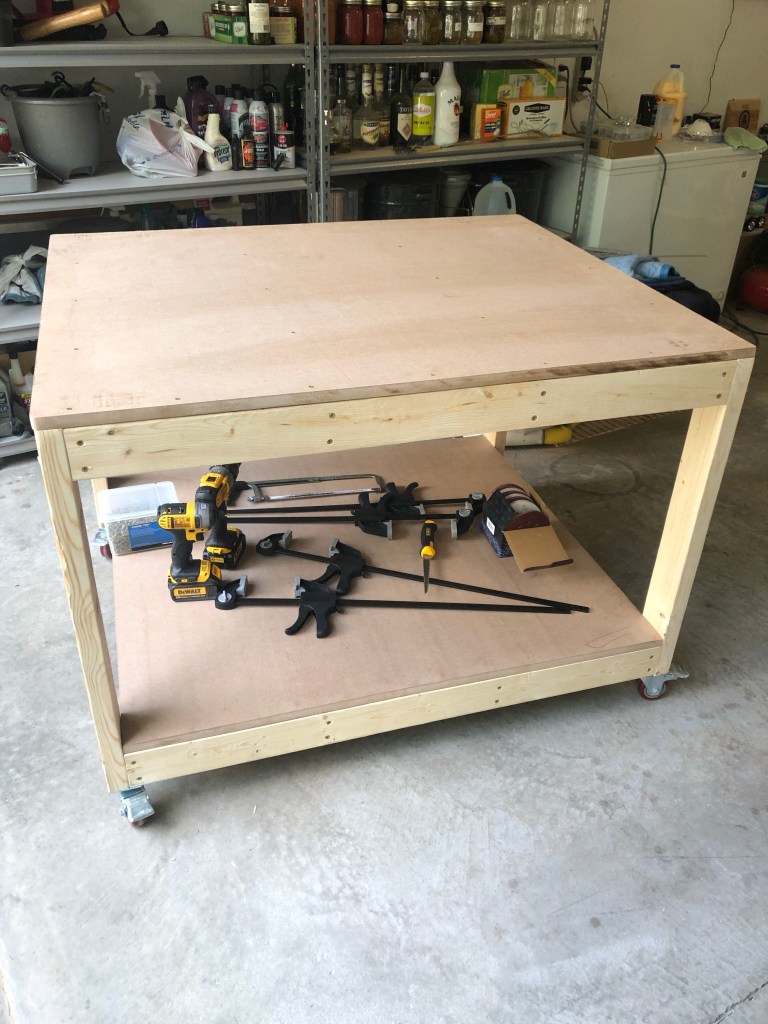 I won’t post the plans I used for the work table online because they’re not mine, but I will give kudos to the site where I got them. FixThisBuildThat has a ton of videos and how-to for aspiring DIY’ers. I actually like to say DITY because of the military, but hey, six of one, half-a-dozen of the other. He also has profiles on Facebook, YouTube, and Instagram. I highly recommend his easy to understand methods and plans. I even enjoy his meticulous method for laying out screws to the nearest 1/1000th of an inch because as he says, “engineering”. I even went so far as to purchase the whole work-shop set of plans from his site to keep me busy.
