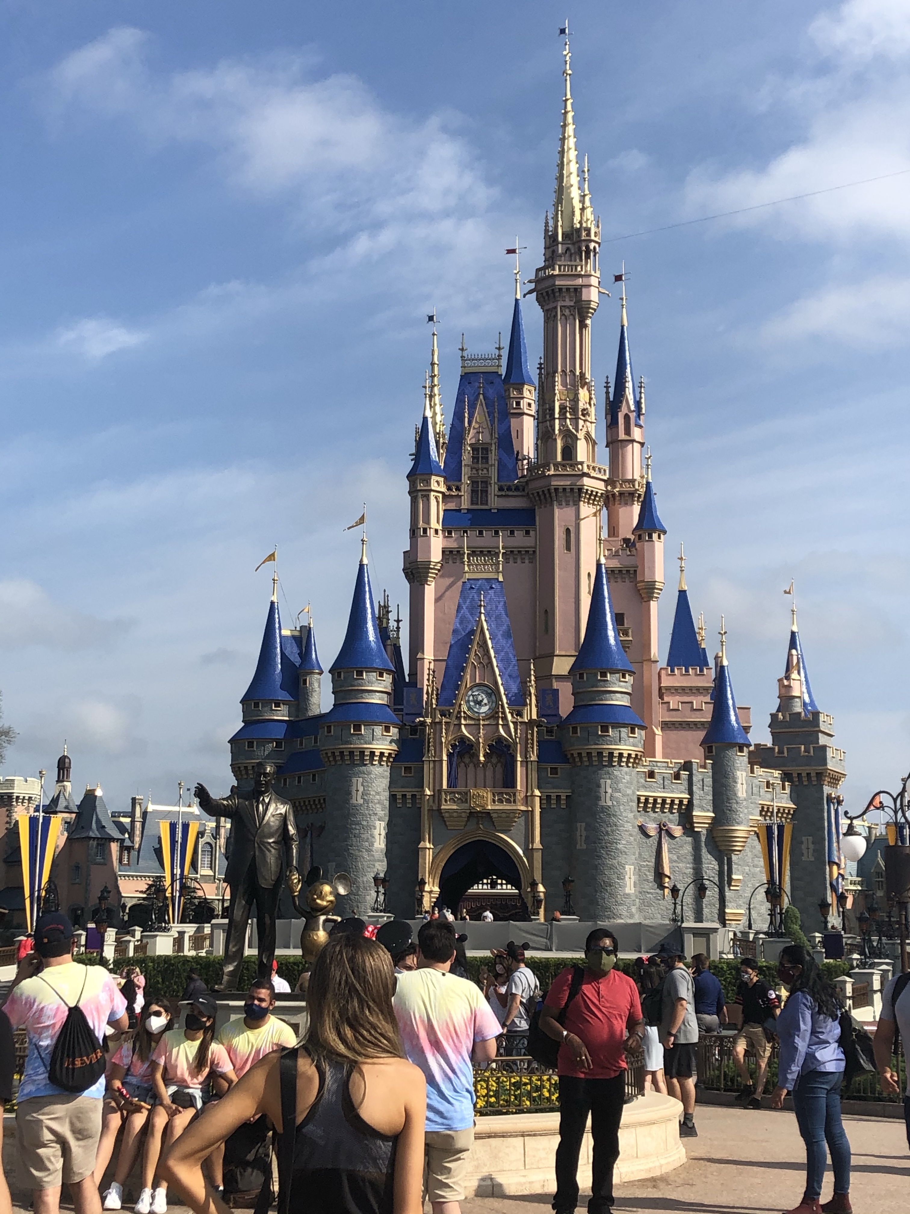 Afterwards, we went to fantasyland to try out the new mining roller coaster from the seven dwarves. We stood in line about an hour and got up to the cars just for the ride to break down. We waited a bit to see if they’d fix it quickly, alas, no dice. The my cleared the queue, but we got one fast pass each for our trouble. Because of covid restrictions at the park, fast pass isn’t a thing, but you can earn one this way, and it worked out well for us later in the day.
