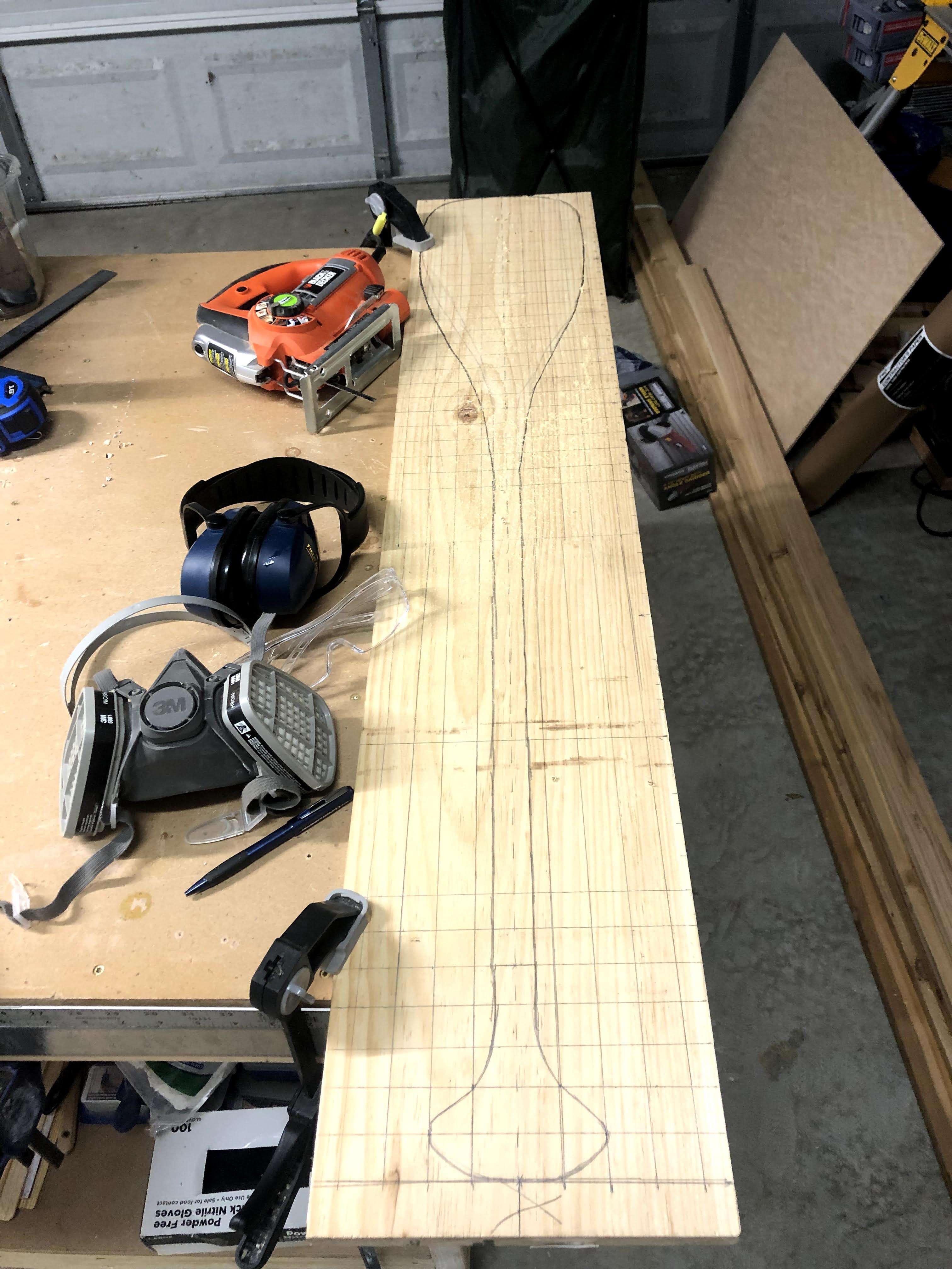 I grabbed a big enough piece of lumber, traced a one inch grid all over it, then sketched a design on the grid for the paddle. It took a few hours to sketch out, but I think it turned out great.