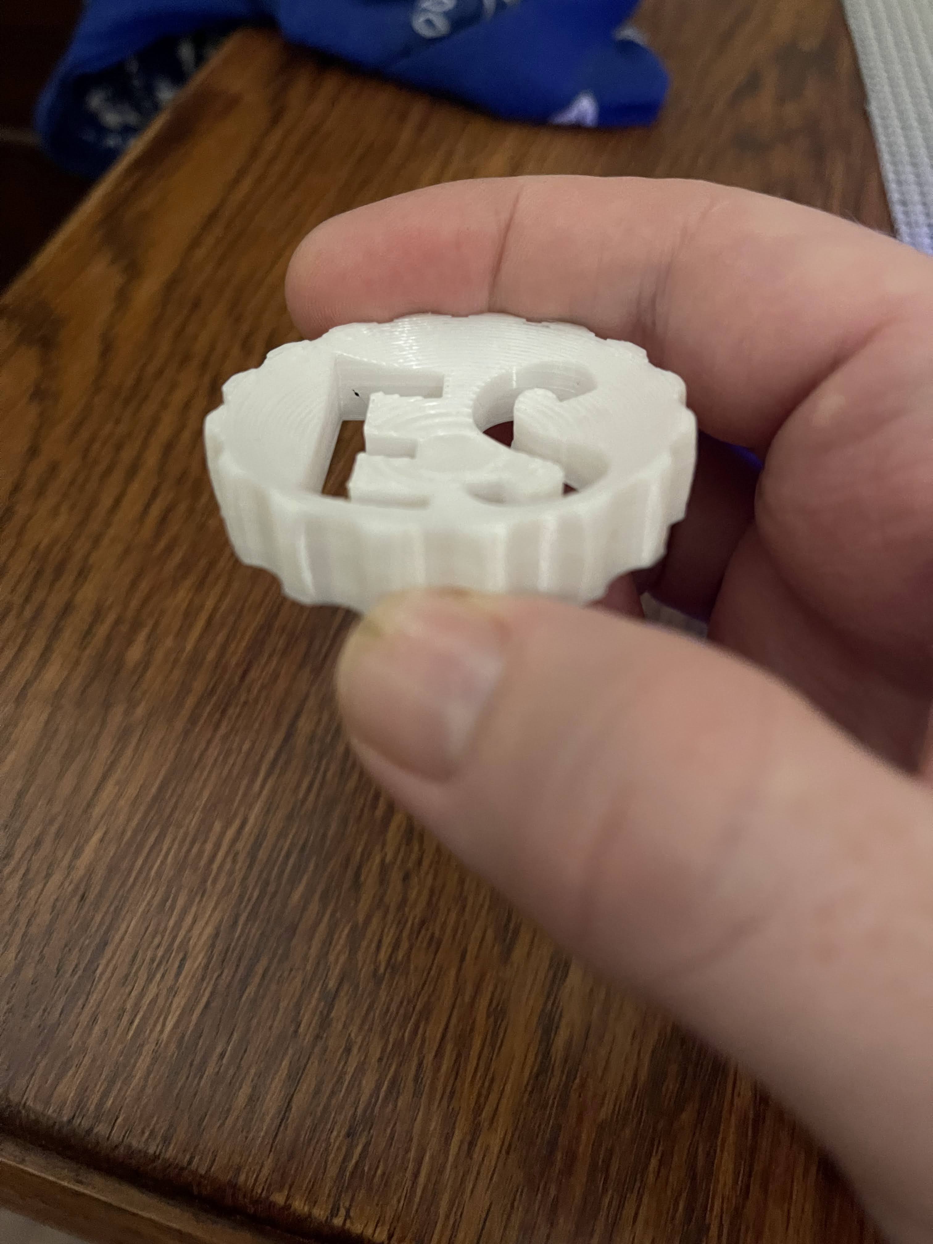 The first thing I designed and printed was a maker’s coin. This is something that a lot of makers create as sort of a calling card to share with other makers. It’s one of the easiest and first things most makers make. It is the culmination of learning 3D design software. My maker’s coin isn’t fancy, it’s quite simple, but I made it all on my own, so it’s special to me.